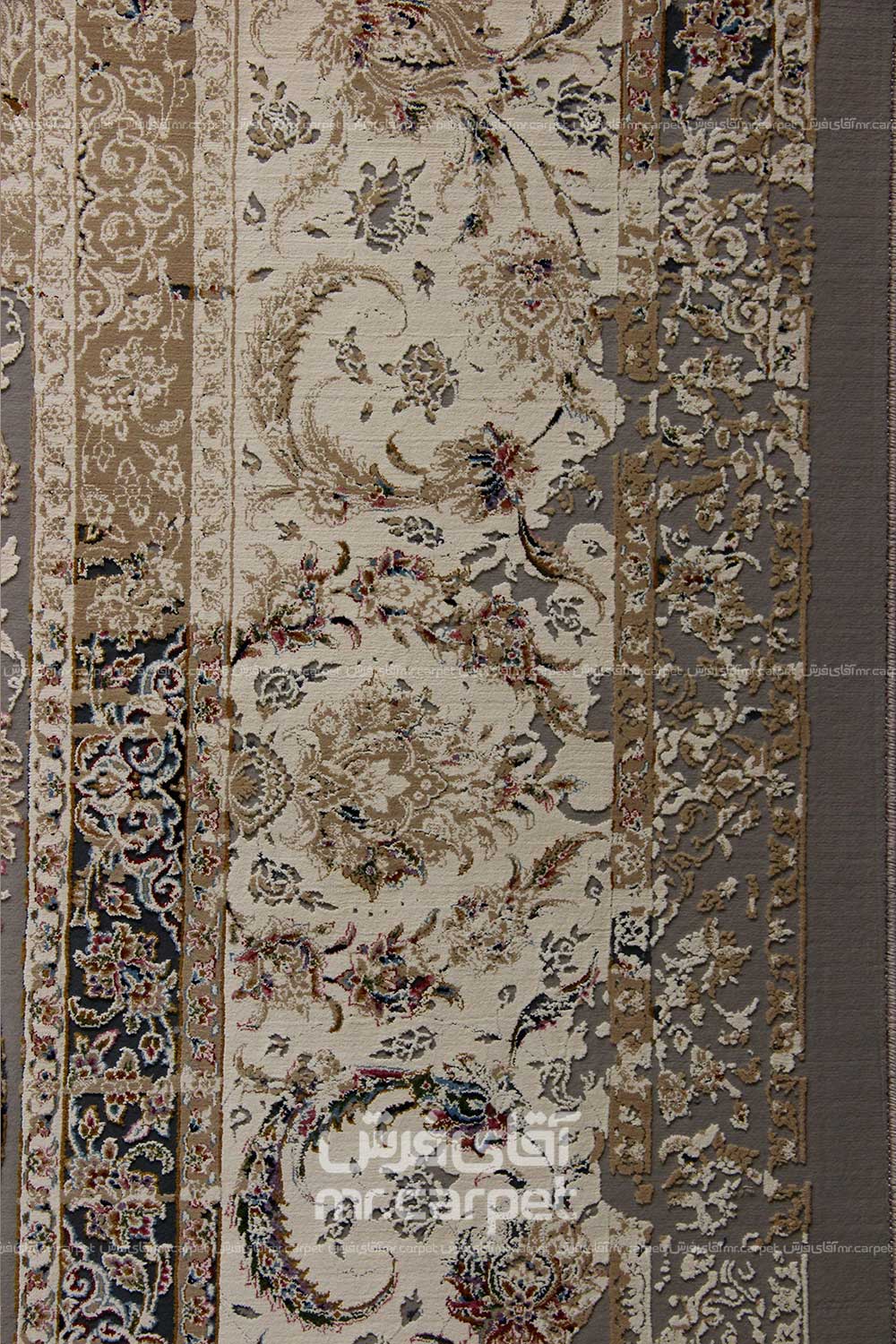 فرش ماشینی وینتیج طرح ویانا وینتیج نمونه 2 نقره ای 1500 شانه پلی استر-اکرلیک فرهی