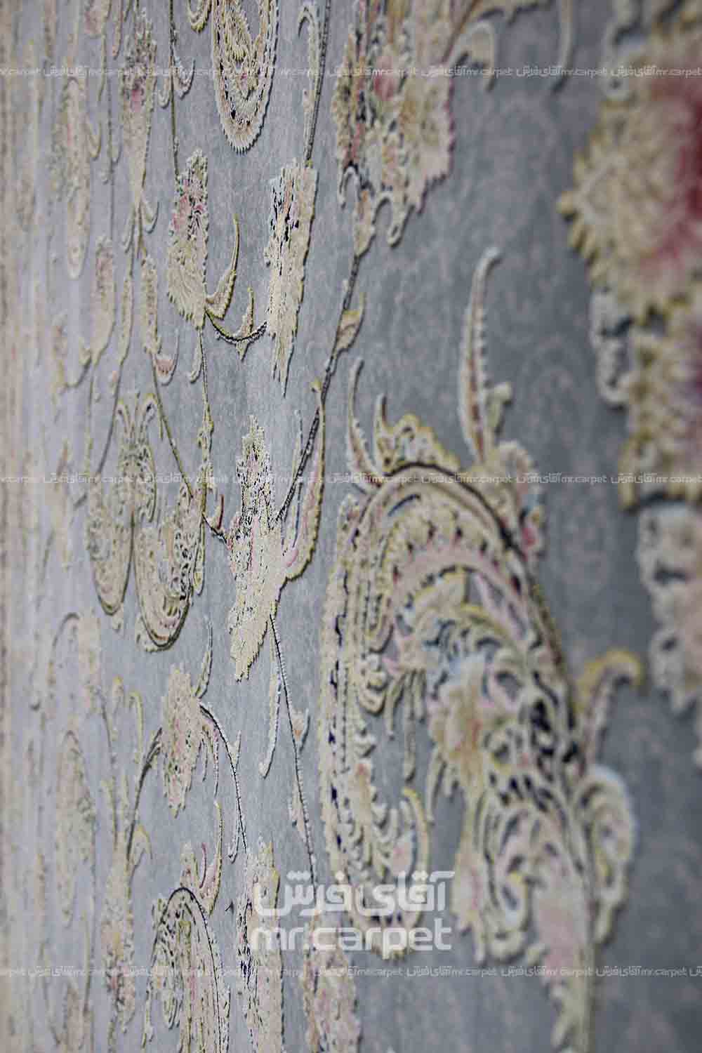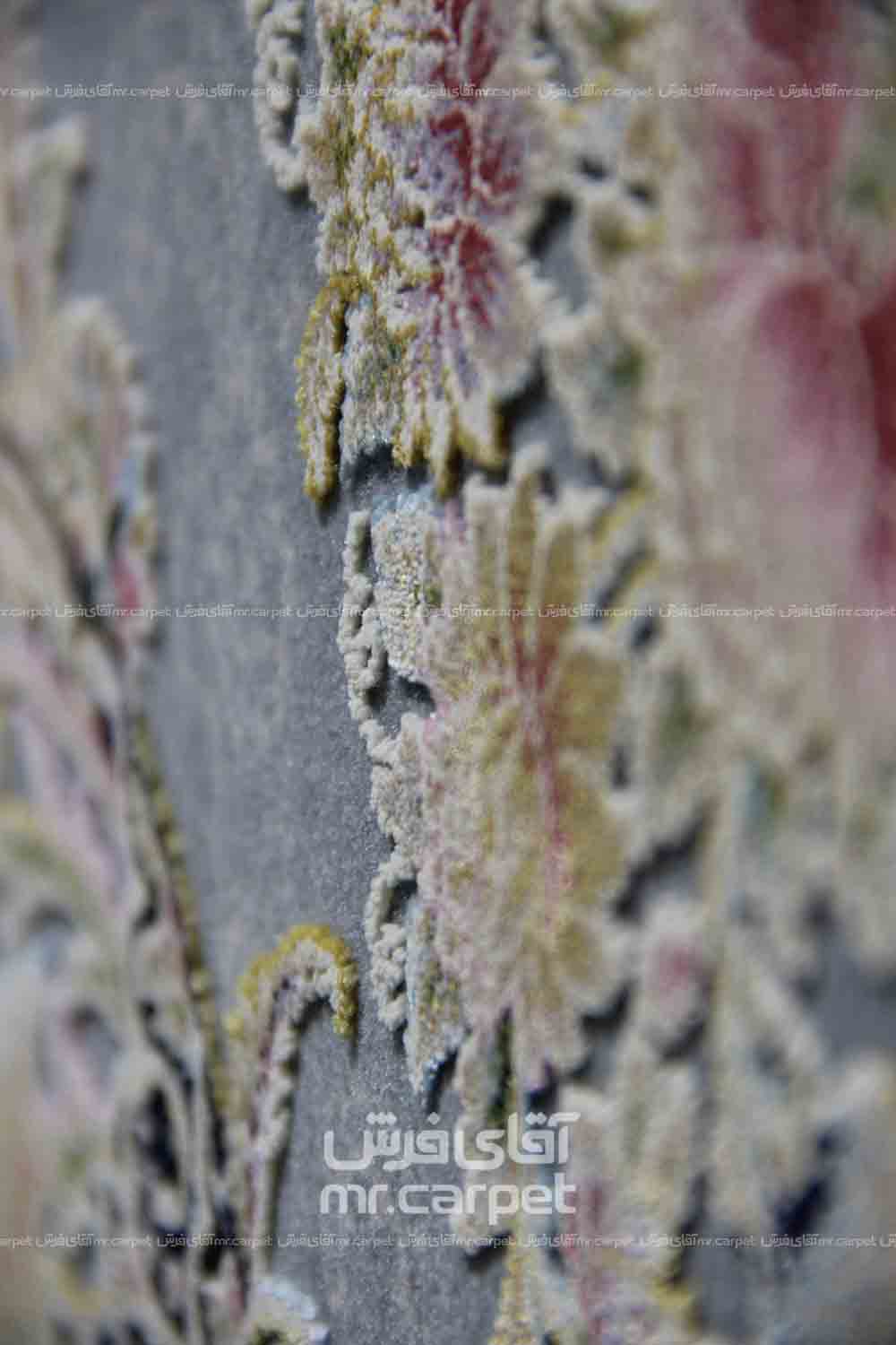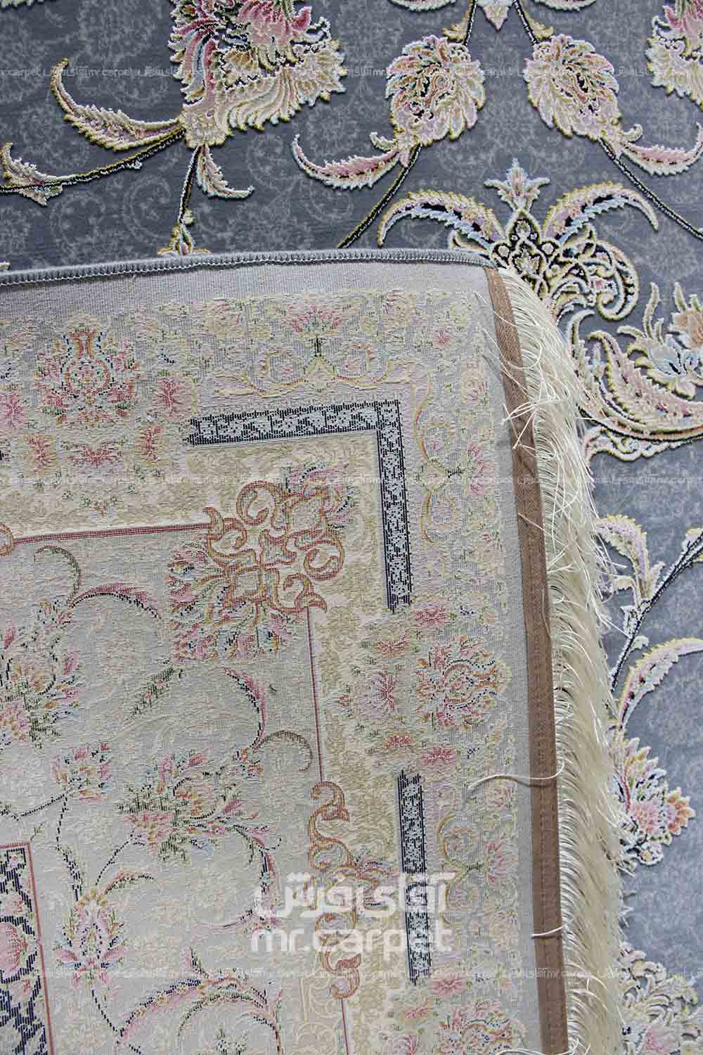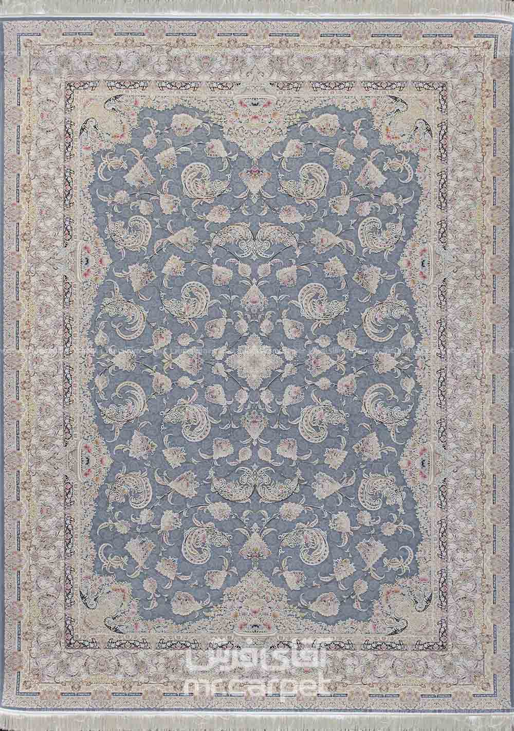 فرش ماشینی کلاسیک طرح آرنیکا نمونه 1 آبی دودی 1500 شانه پلی استر-اکرلیک فرهی