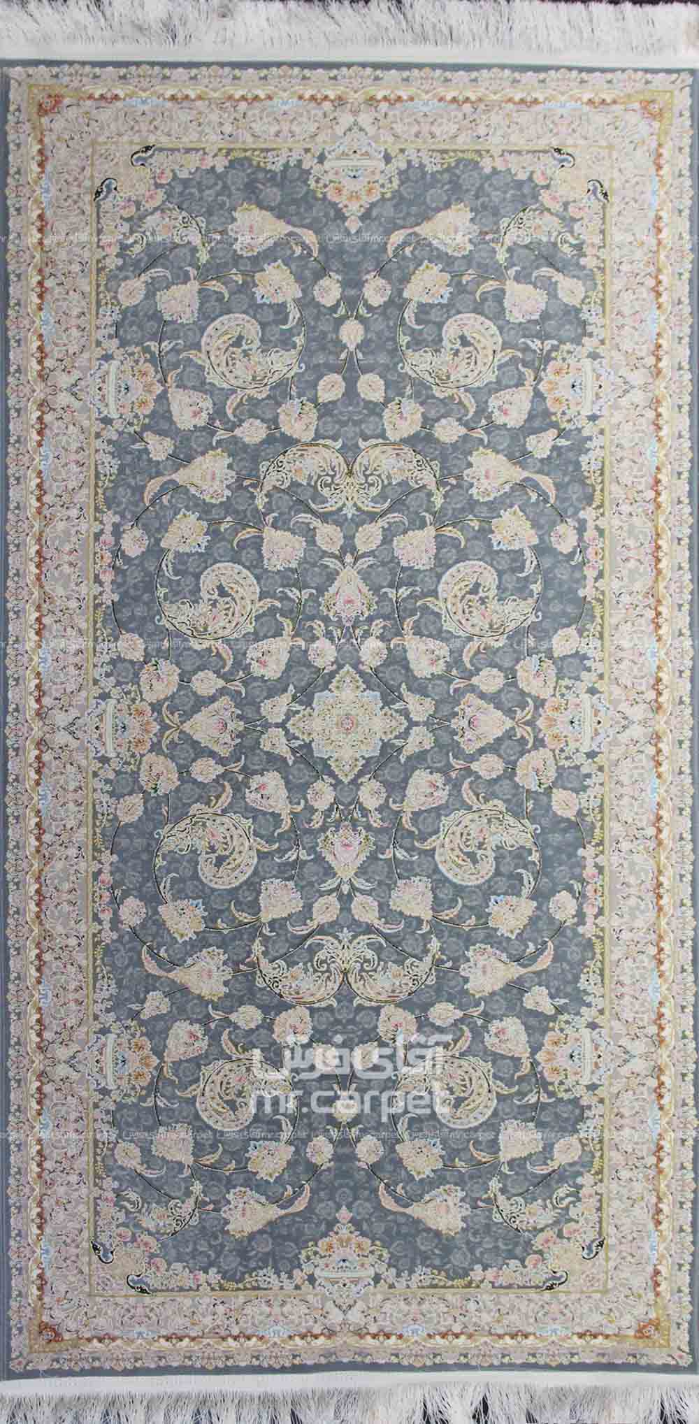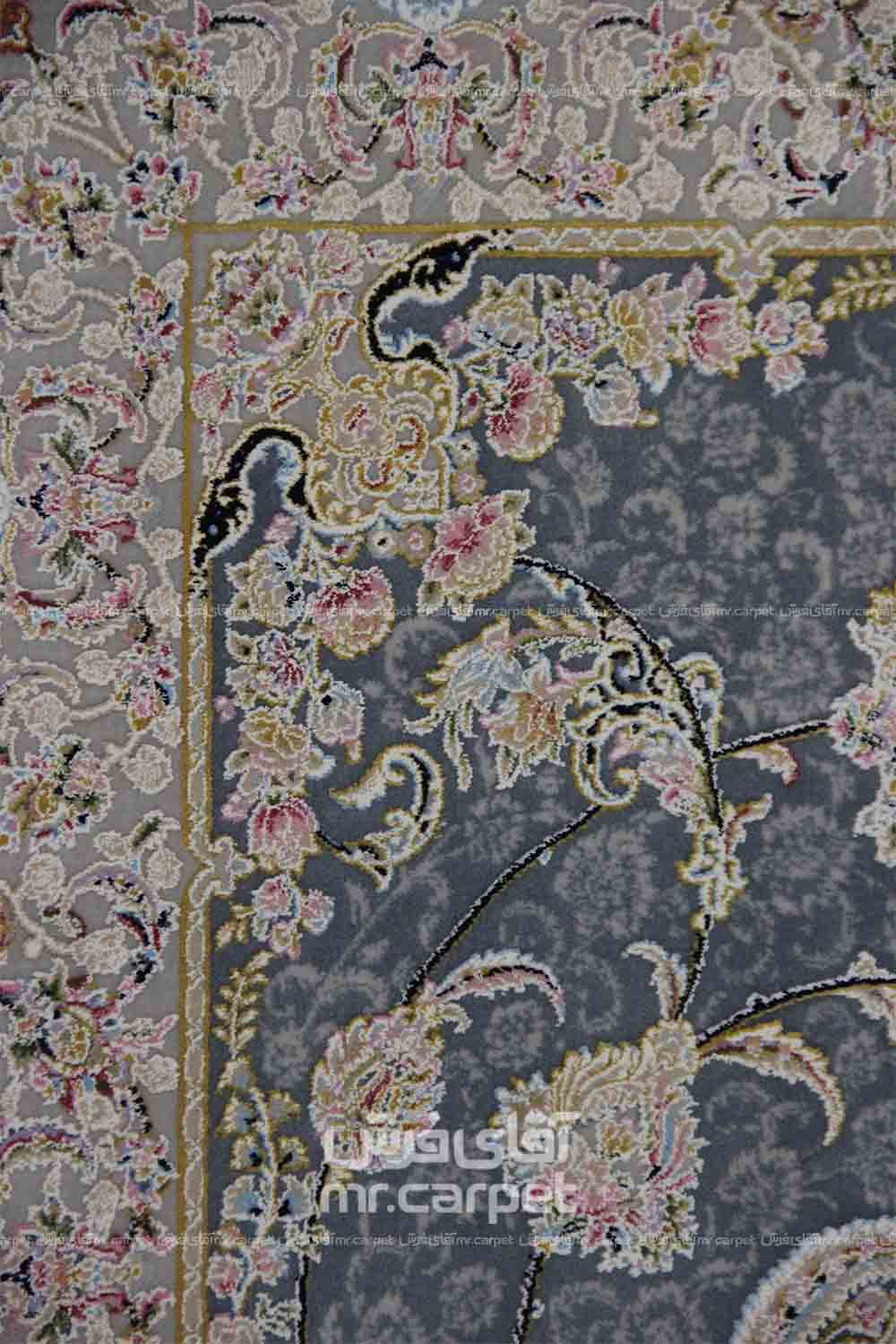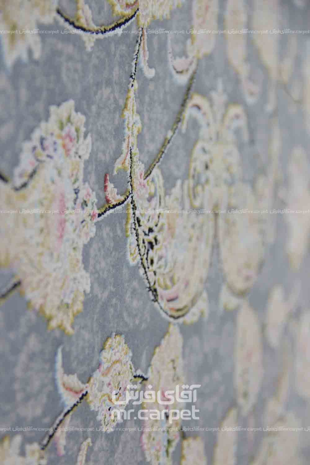 فرش ماشینی کلاسیک طرح آرنیکا نمونه 2 آبی دودی 1500 شانه پلی استر-اکرلیک فرهی
