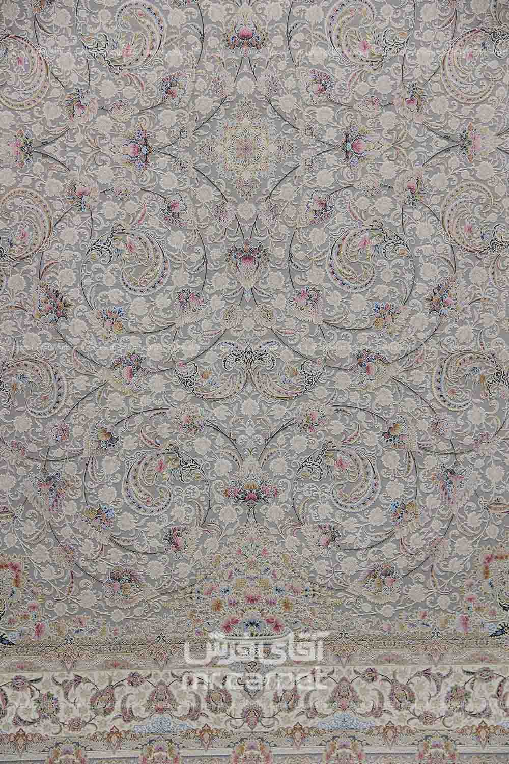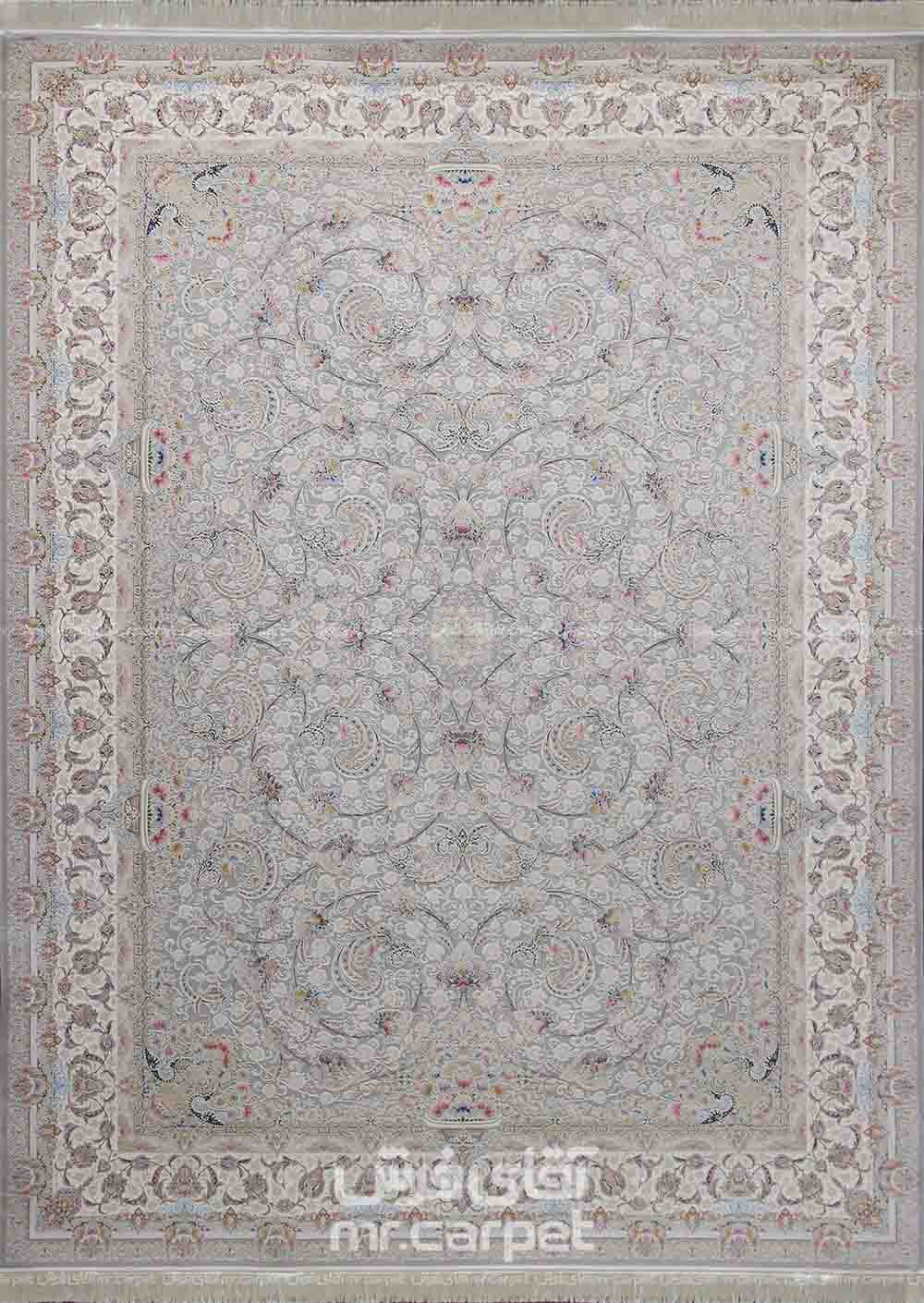 فرش ماشینی کلاسیک طرح آرنیکا نمونه 2 نقره ای 1500 شانه پلی استر-اکرلیک فرهی