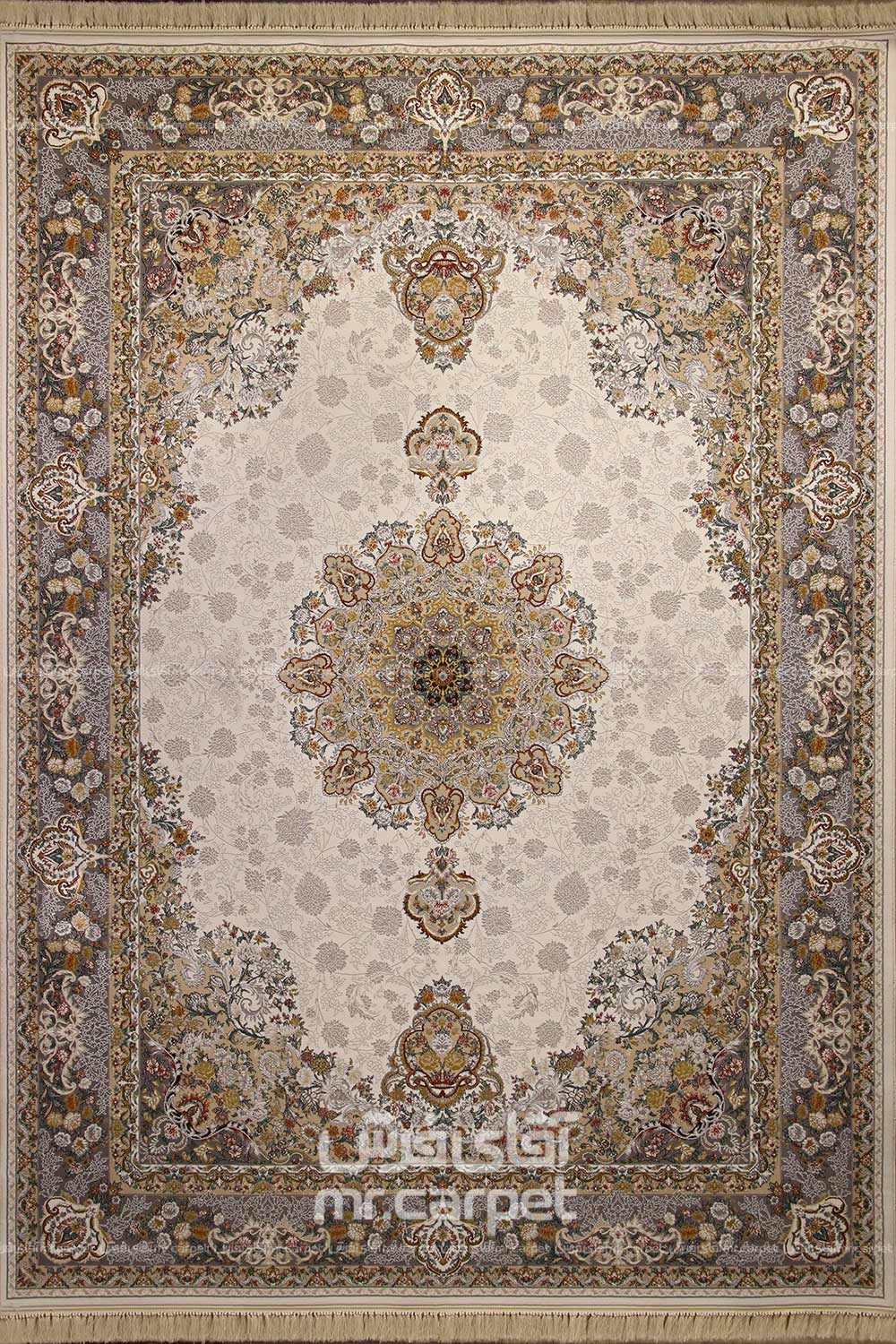 فرش ماشینی کلاسیک طرح آونگ نمونه 1 کرم 700 شانه پلی استر - پلی استر هایبالک فرهی