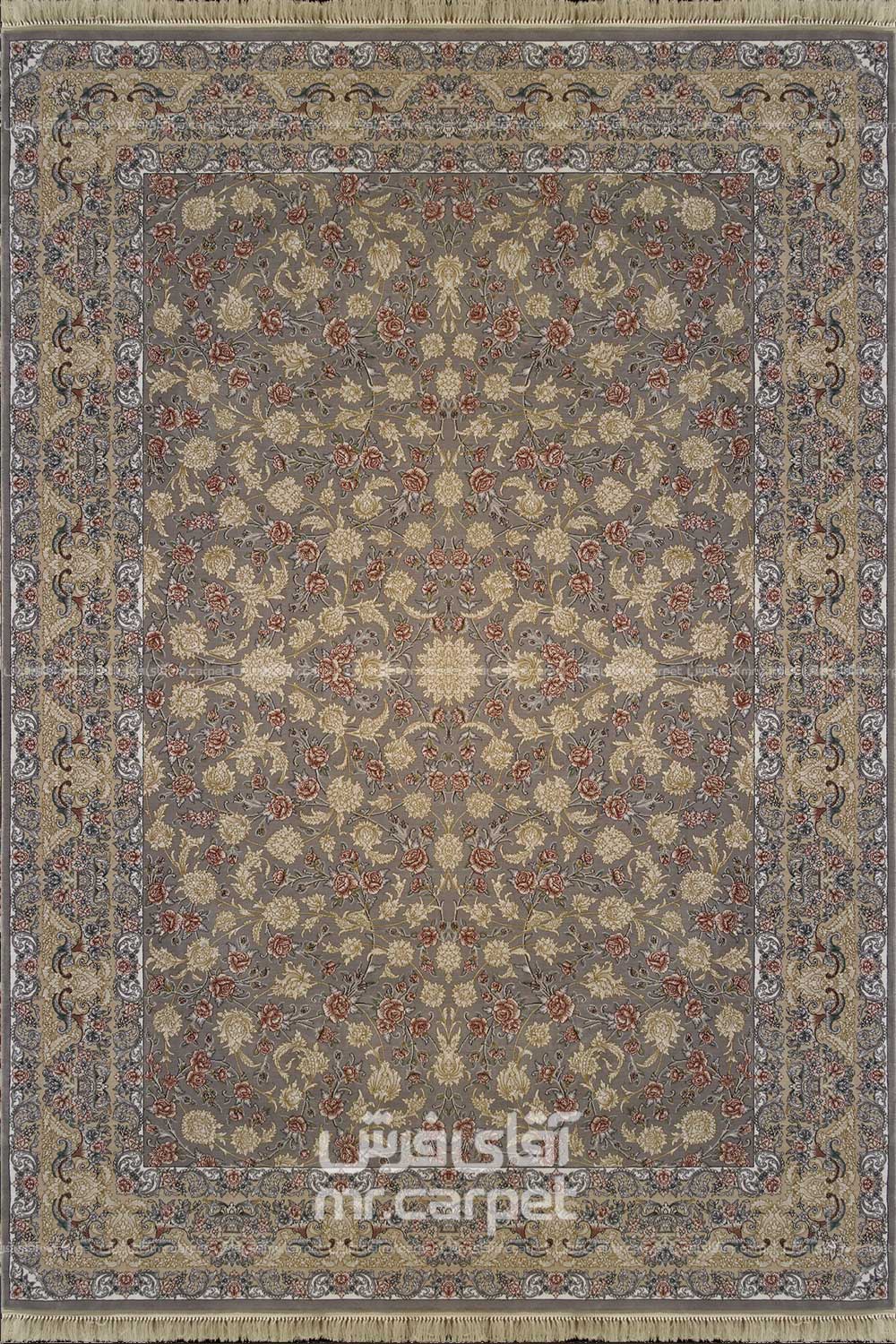 فرش ماشینی کلاسیک طرح رزافشان B نمونه 1 طوسی 700 شانه پلی استر فیلامنت فرهی